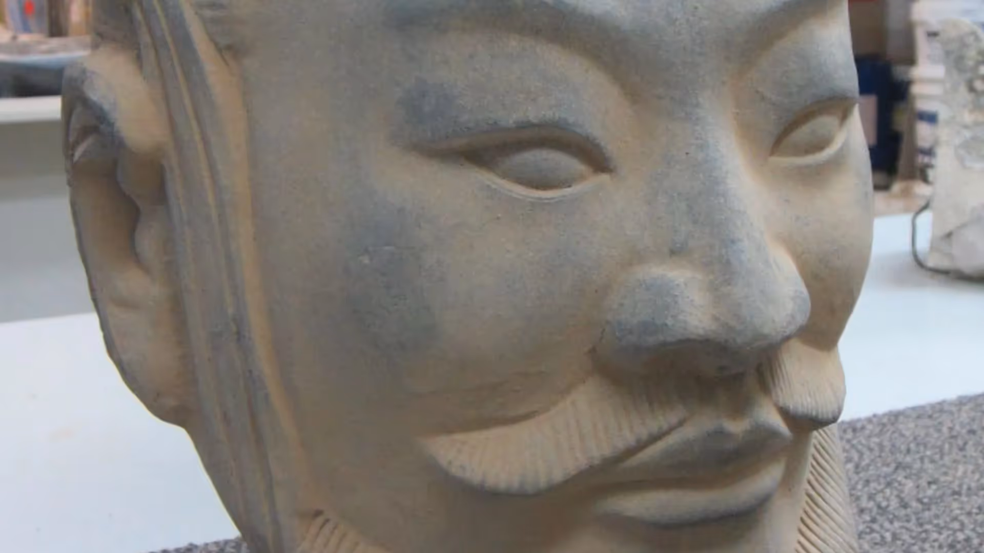 - The ‘Huntsman and Dogs’ is an electroform sculpture, date unknown, attributed to the French sculptor Henri Marie Alfred Jacquemart (1824-1896). The statue is located inside the gardens, adjacent to the Rose Garden (RBG location L16).