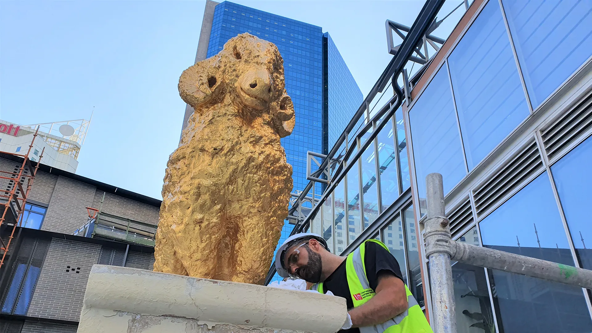 The restored Mosaic now adorns the grand entrance to the newly refurbished banking chamber.