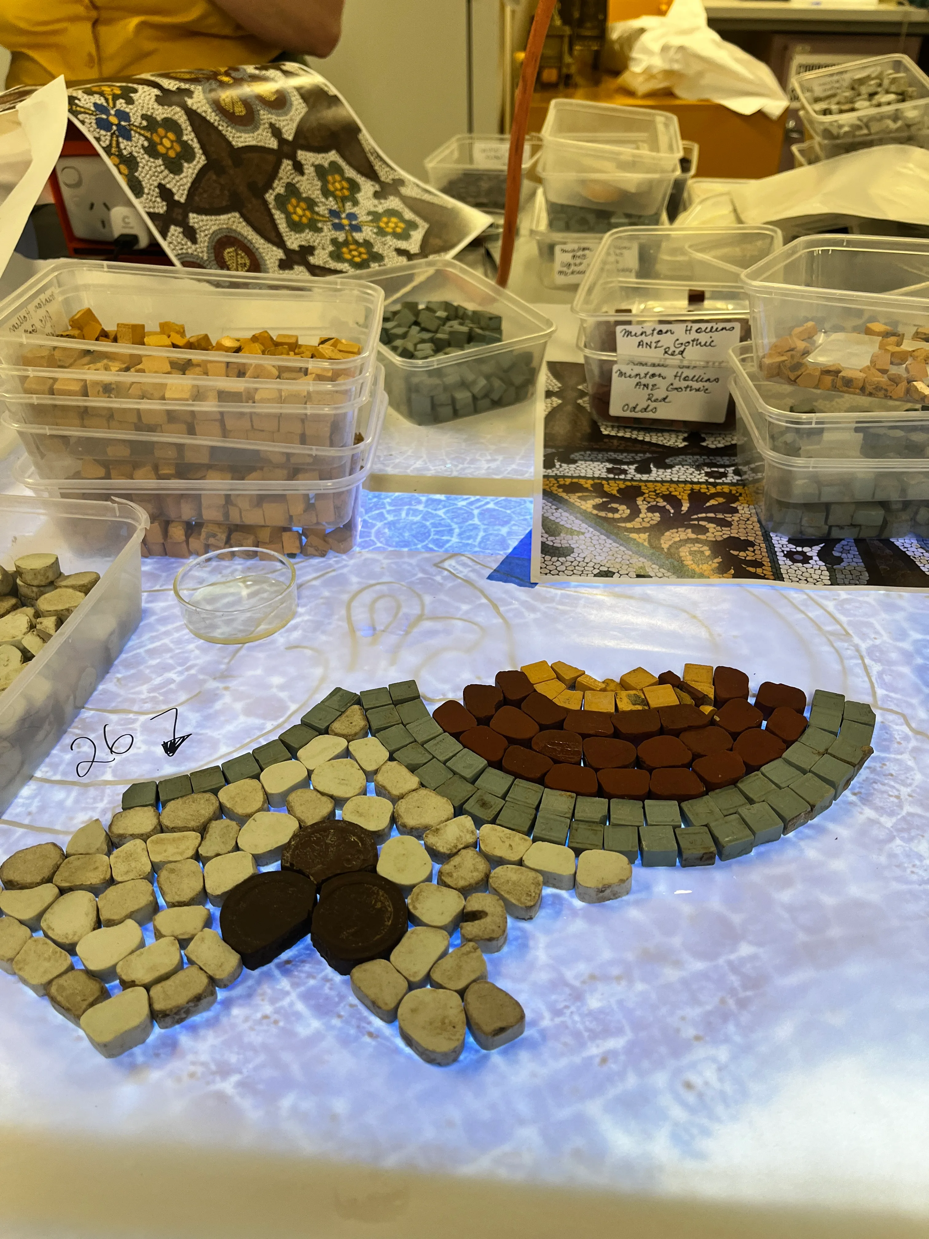 - Photogrammetry and rubbings of the original mosaic motifs to map out the losses and mosaic pattern
