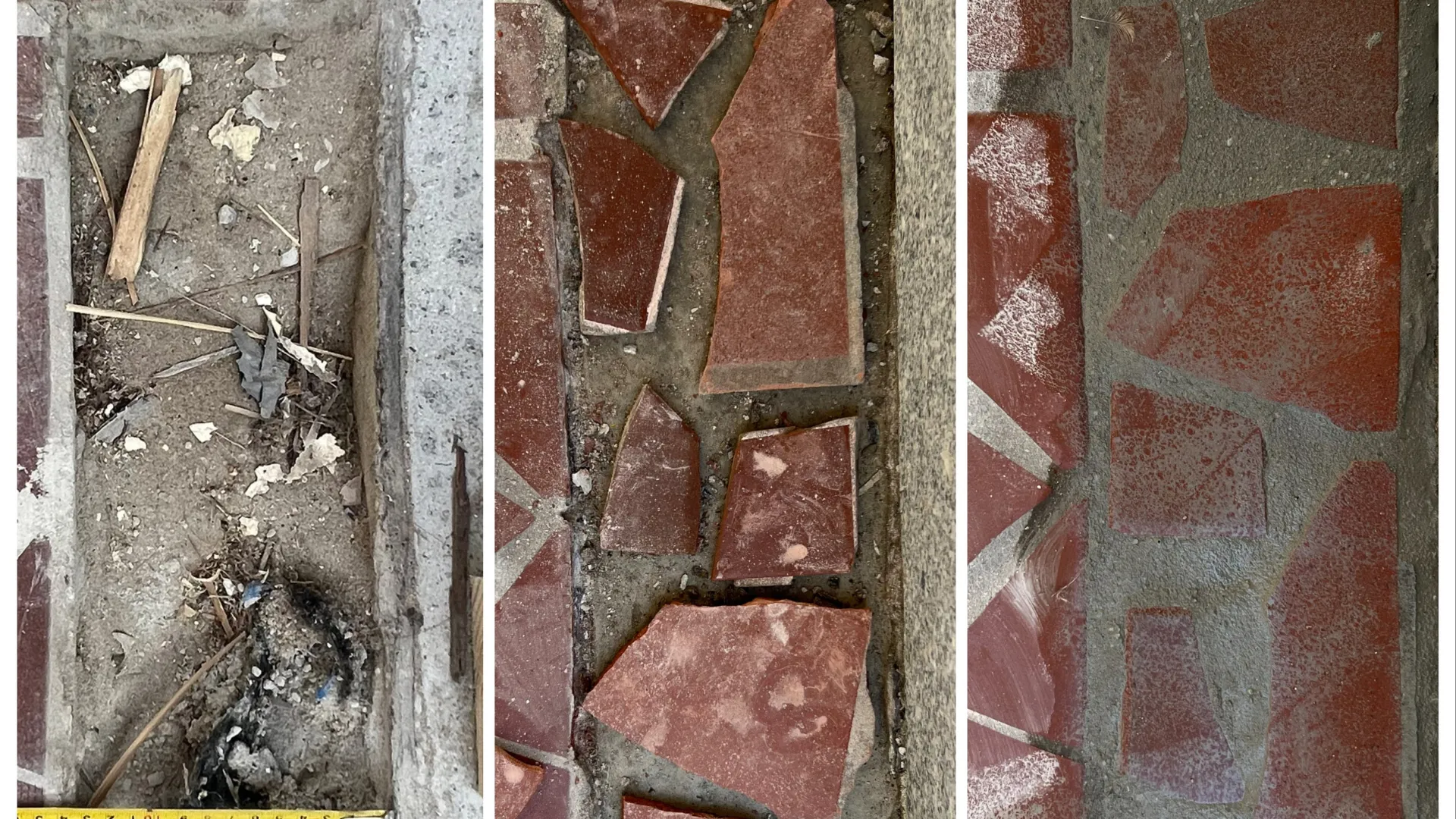 Upon consideration and research, the client decided to proceed with a conservation treatment in only one section with damaged tiles.