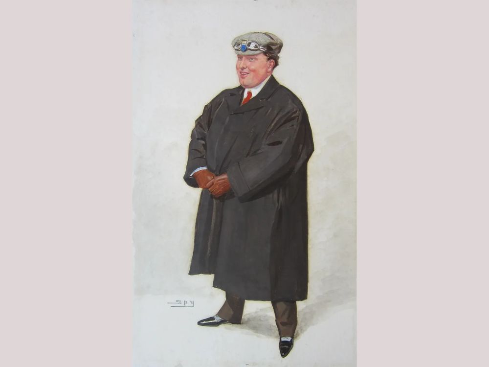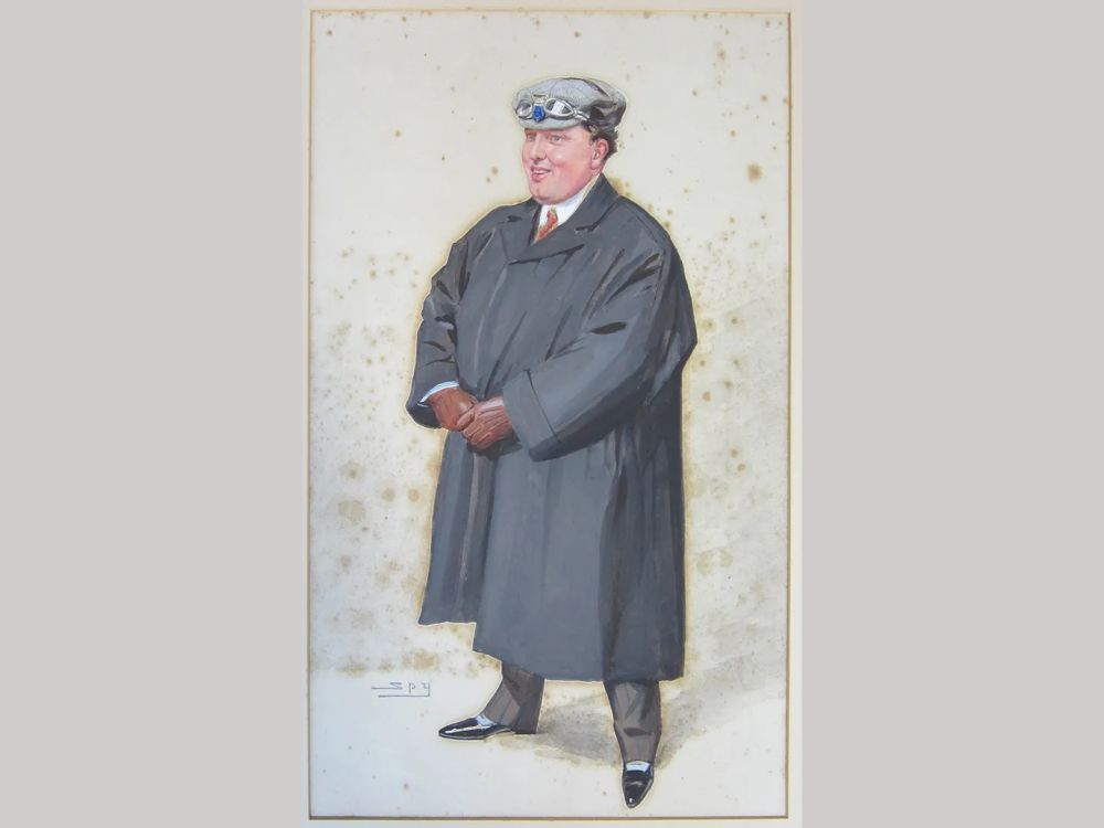 This caricature is painted in gouache, a medium which is particularly sensitive to water. It had been fully adhered to a non-archival mount and backing board which had caused discolouration. There were also extensive foxing spots probably due to mould present in the framing materials.