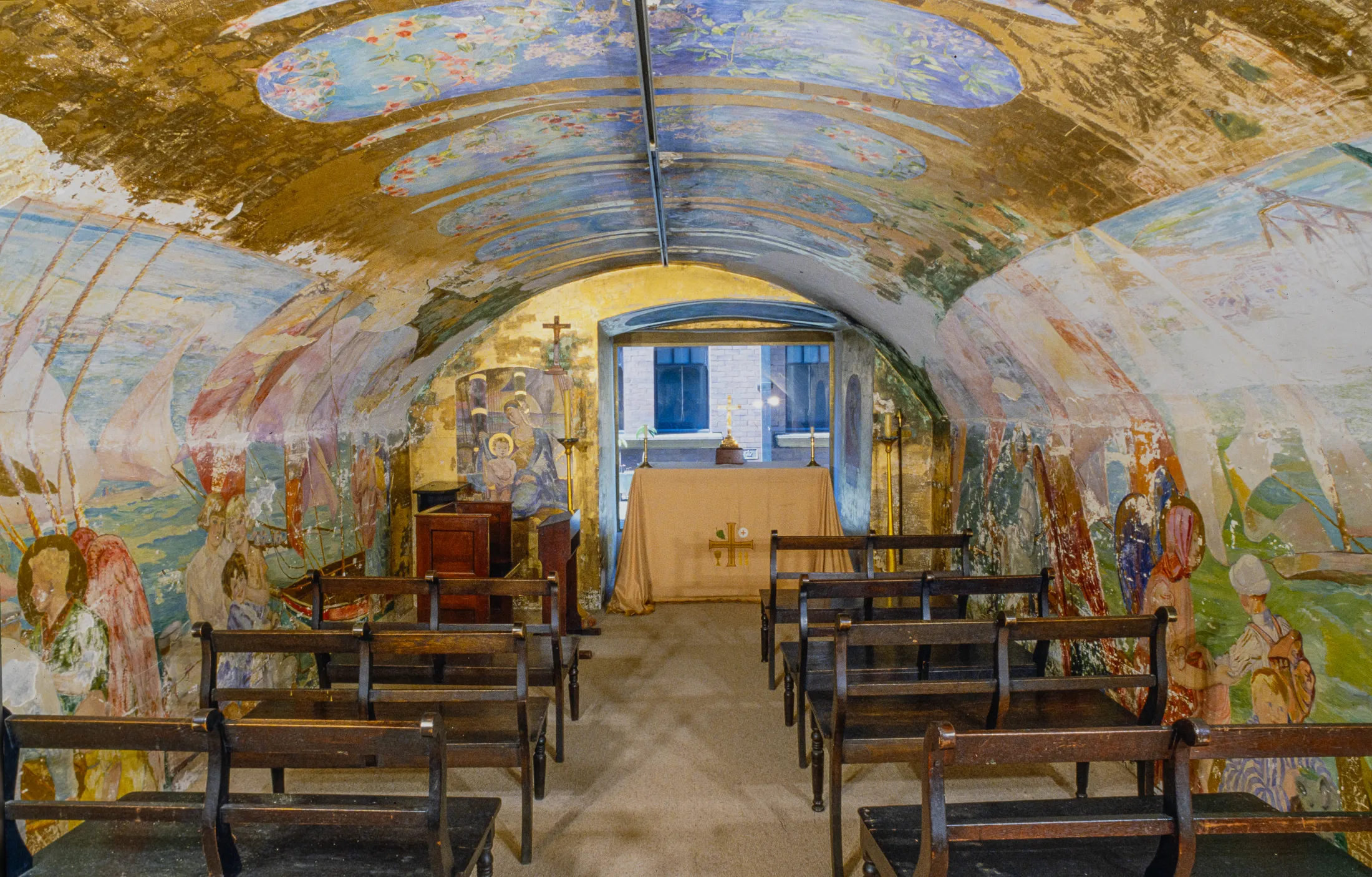- Reapplication of fibreglass panels with mural to crypt walls and ceiling