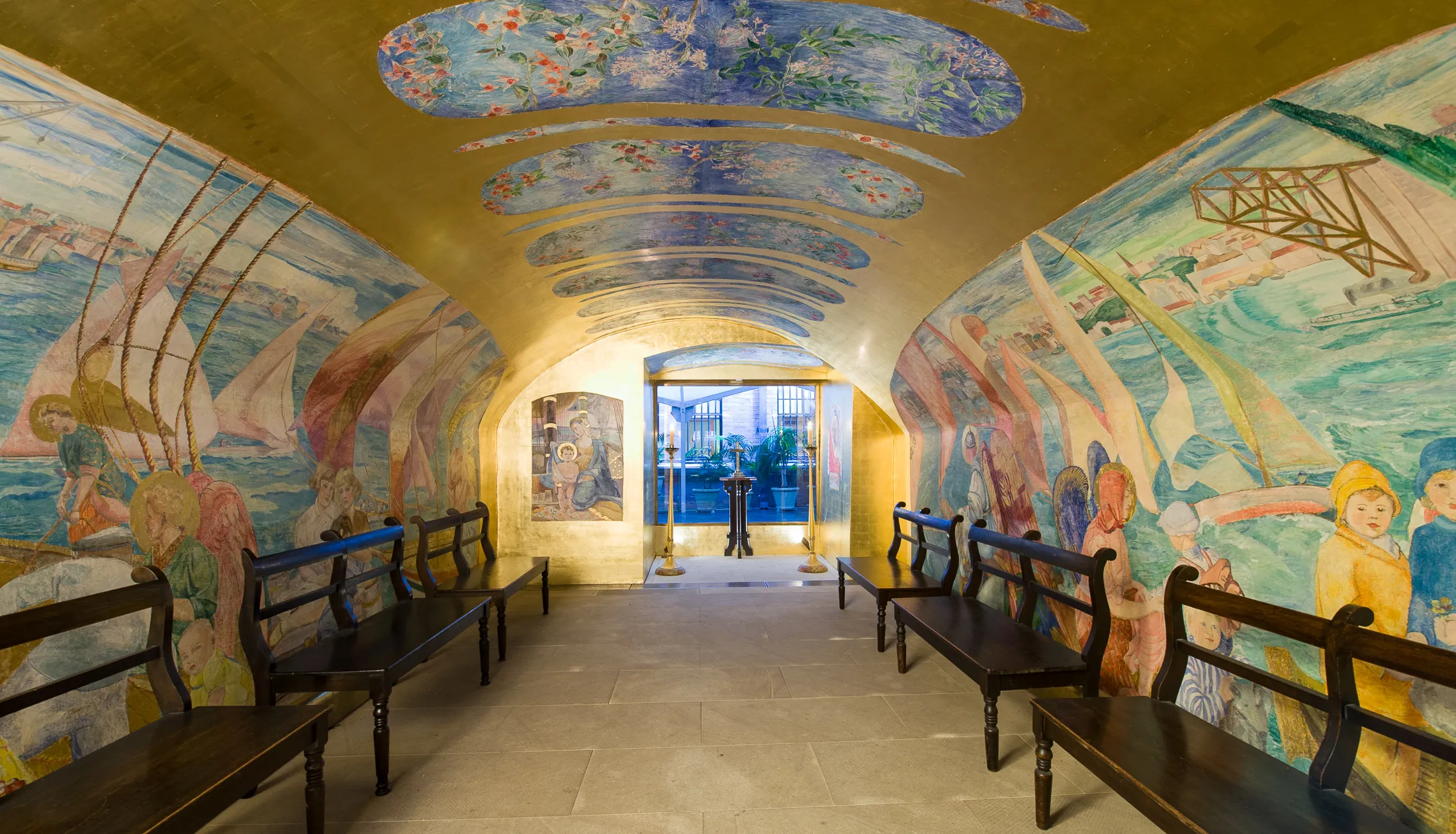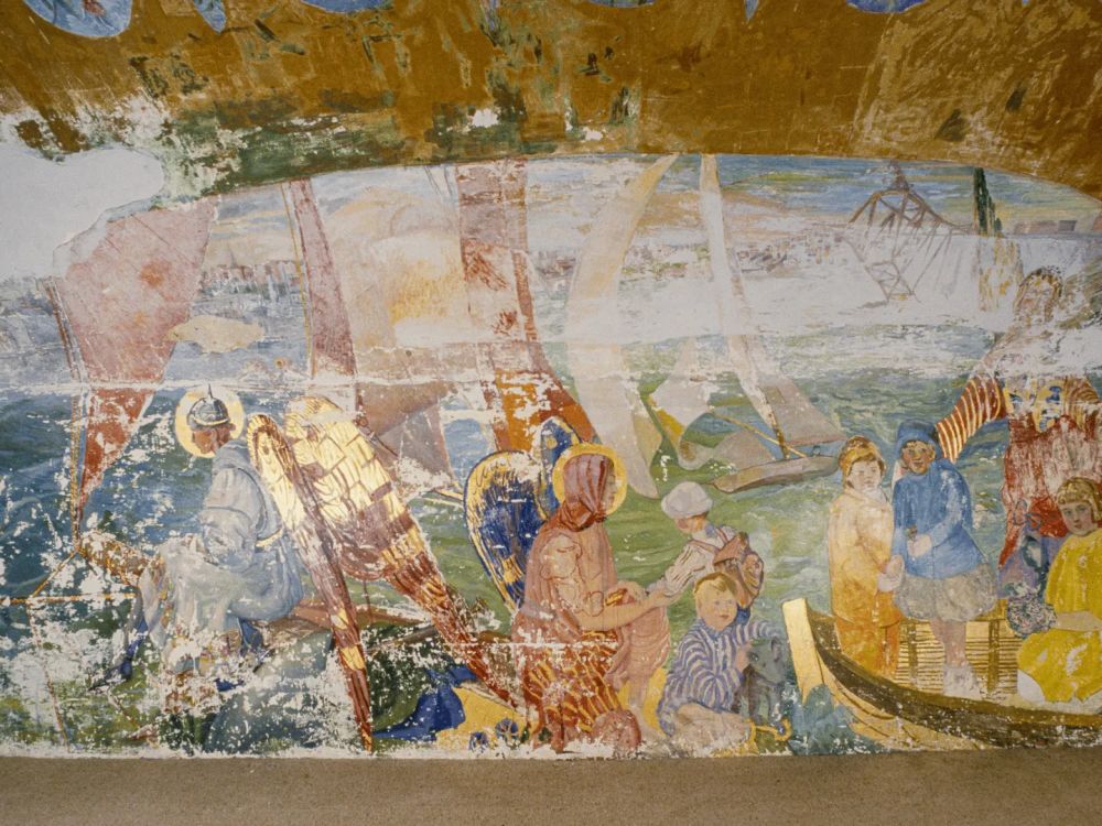 Anderson carried out some remedial work on the murals in 1952 but requested that no further work be done during her lifetime. By the 1980s the murals had deteriorated so much that the chapel had to be closed. Large sections of the paint were being lost as a result of crystalline salts on the wall surface forcing off the painted plaster and gold leaf.