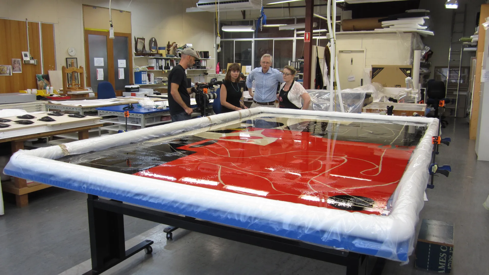 Having hung in the Utzon family dining room for several decades, the piece was in need of cleaning and repair. Once it arrived back in Sydney, ICS was called upon to restore it, advise on display conditions, and finally manage the installation.