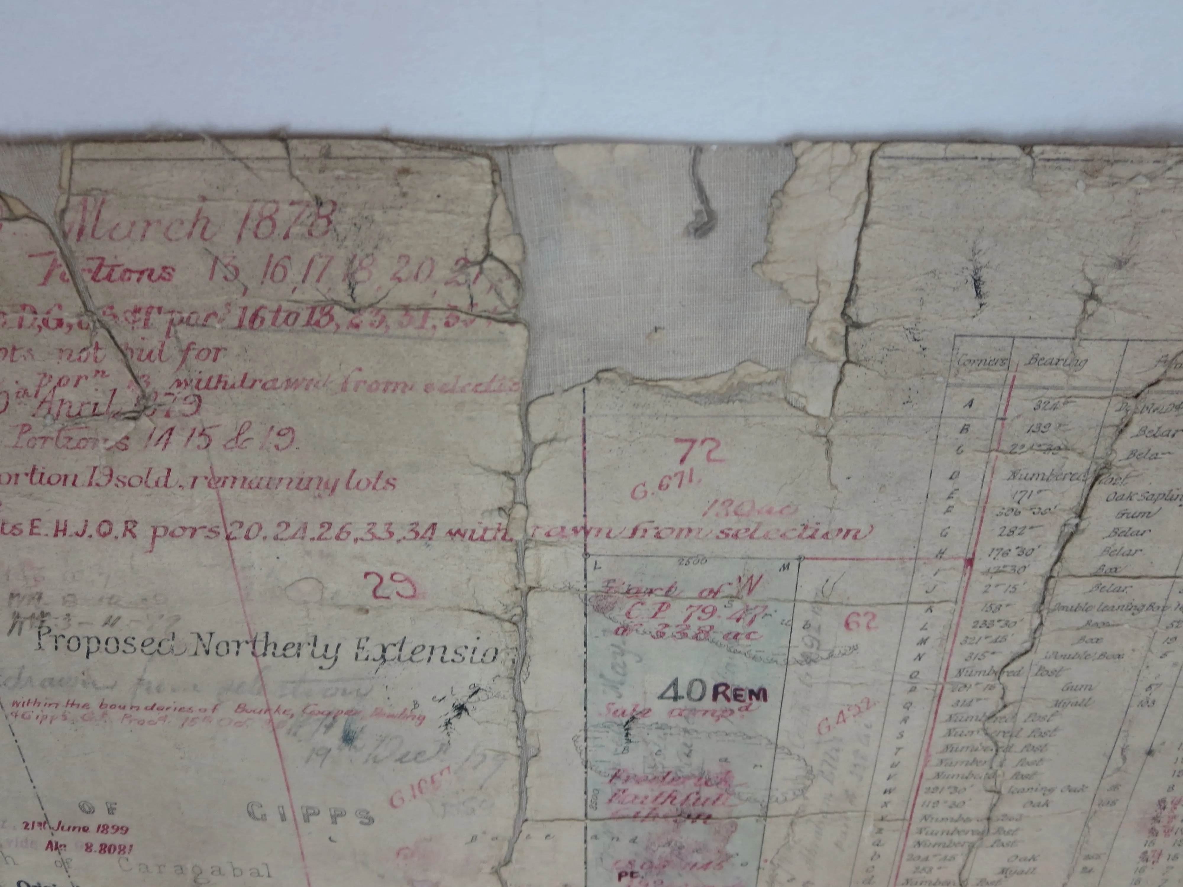Conservation treatment focused on repair and stabilisation of the plans so they could be handled with ease and to help prevent further damage during the scanning and digitisation process.