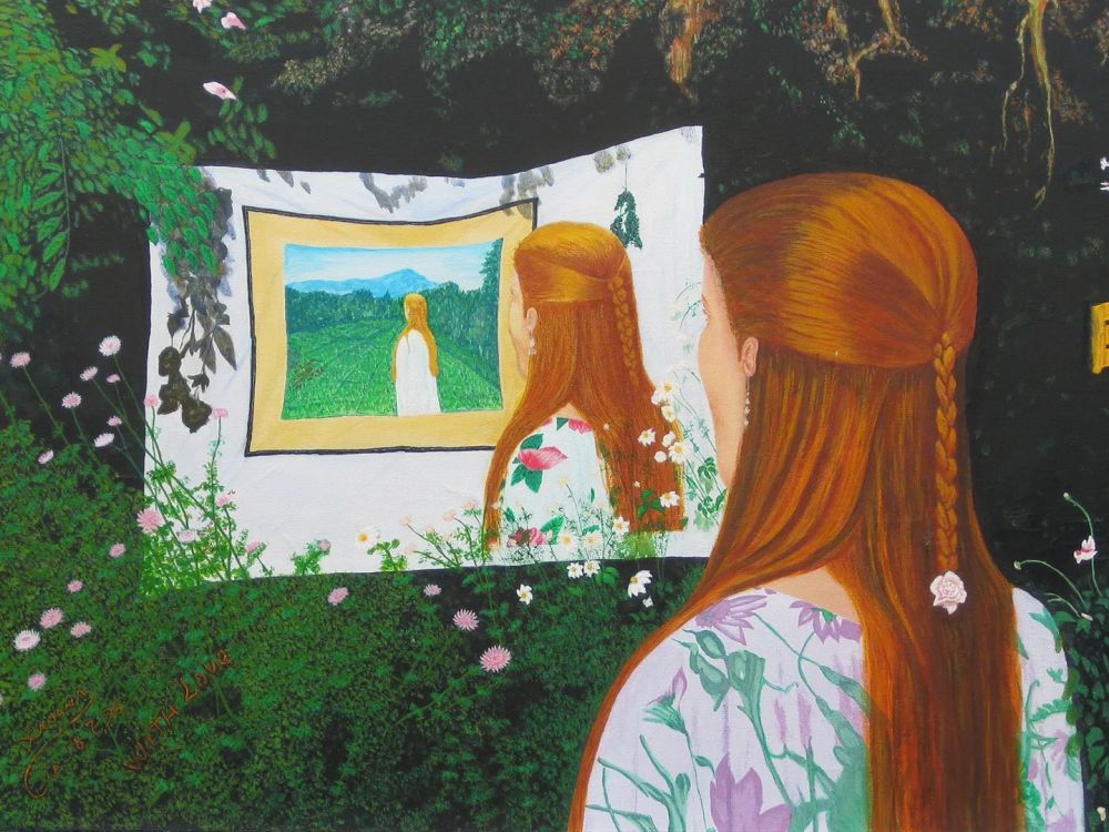 He decided to draw images of his early life growing up in Timor, but also to illustrate the pain of being separated from his wife. He did this by painting Kirsty from behind looking into a mirror, creating a new image within a further mirror as each year of separation passed. In all he painted six of these highly evocative images, a series of paintings now known as Gusmao's 'Tunnel of Time'.