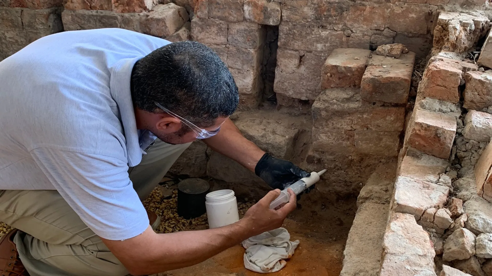The trials also demonstrated that the application of the insecticide did not change the appearance of the archaeology, and that filling the burrow holes imparts enhanced physical strength to the damaged mortar.