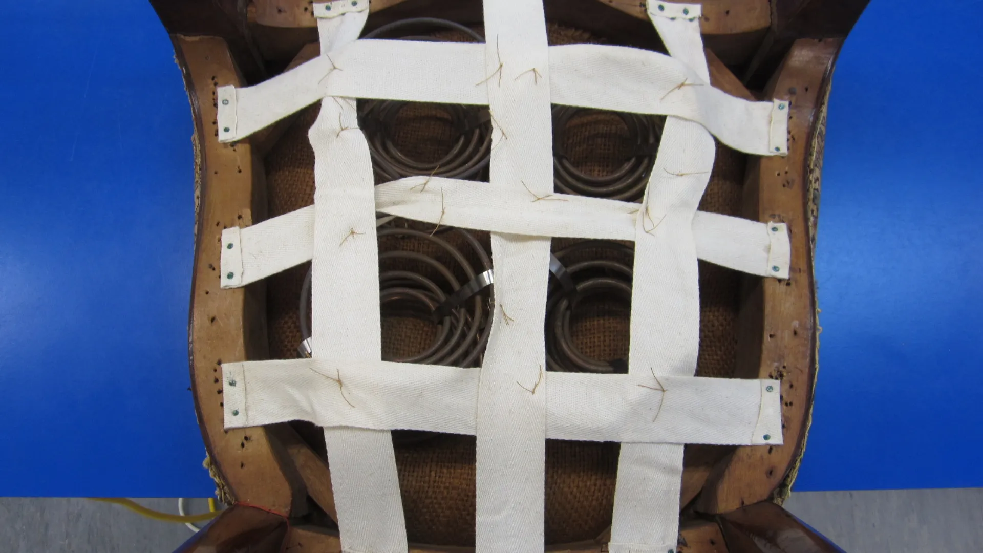- New webbing interwoven to mimic the original and secured using original tacks in existing holes