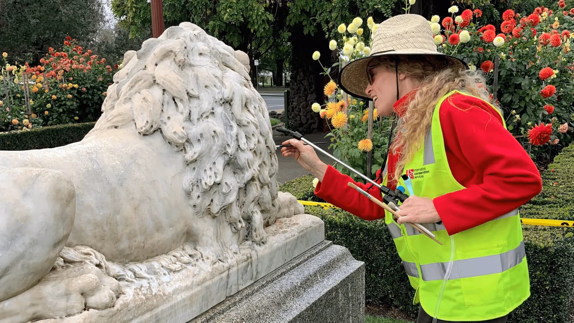 - The ‘Huntsman and Dogs’ is an electroform sculpture, date unknown, attributed to the French sculptor Henri Marie Alfred Jacquemart (1824-1896). The statue is located inside the gardens, adjacent to the Rose Garden (RBG location L16).