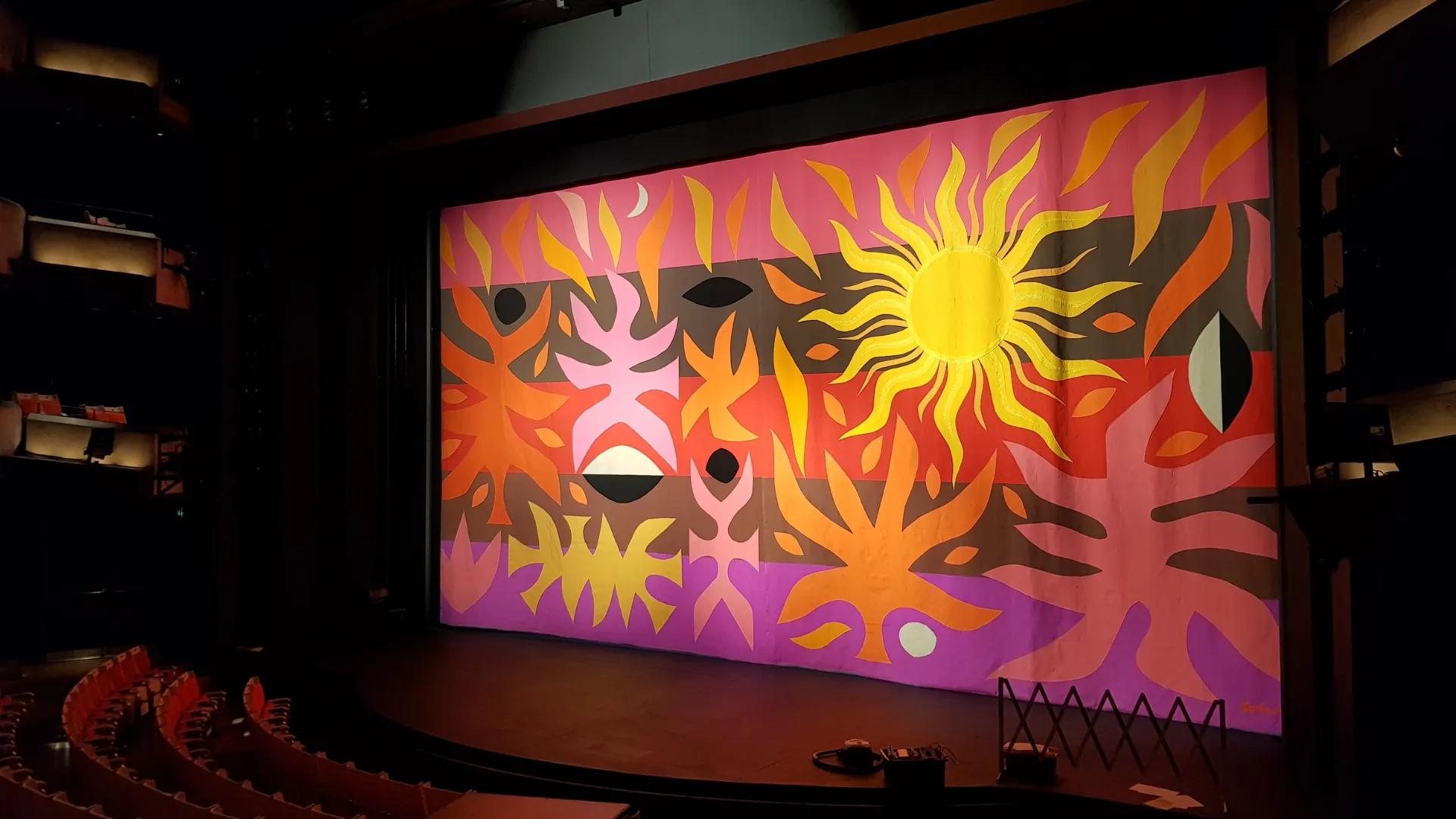 - Each piece was surface cleaned and brush vacuumed, front and back, to remove all particulates from the surface. The existing Velcro hanging system, which previously replaced the original ring system, was secured. A new temporary hanging system was devised for The Curtain of the Moon, and improvements were made to the storage of both tapestries.
