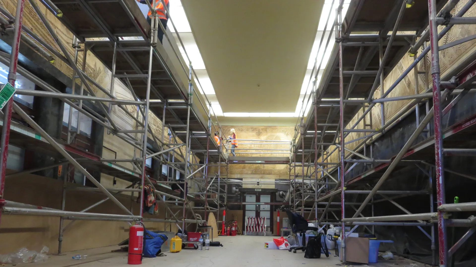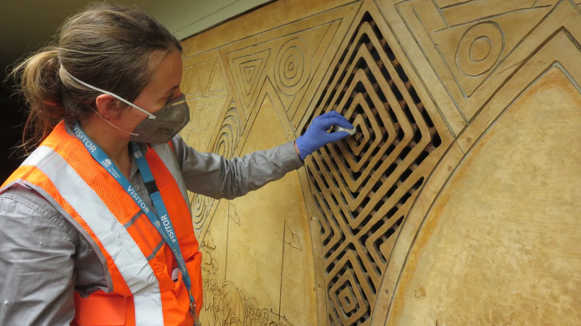 The conservation treatment was undertaken in 2018 and was remarkably successful in retaining the patina of the plaster work whilst allowing the full impact of the artwork to be appreciated afresh.