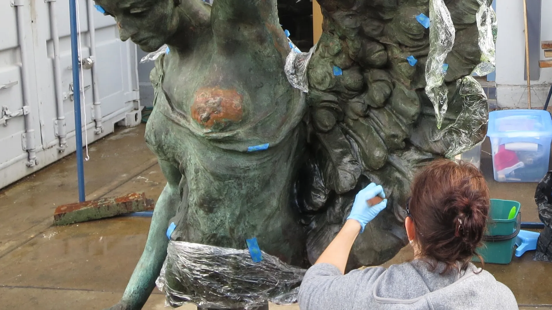 ICS conserved the original components of the sculpture on behalf of the AWM after it passed into their ownership. This involved very carefully separating the original upper half from later restorations, painstaking repairs to make it stable, and time-consuming removal of overpaint to reveal its original patina. We then oversaw its transfer to Canberra, where it has now become the focal point of the AWM’s new First World War Galleries.